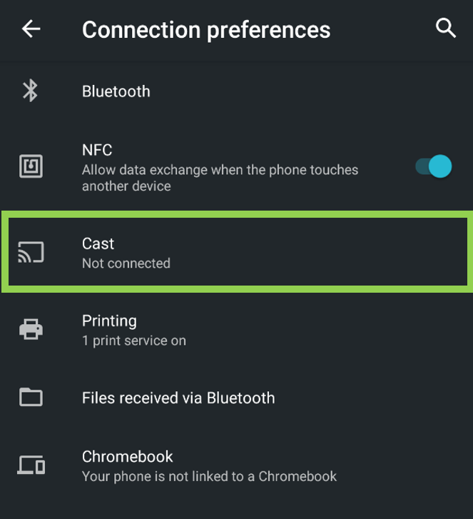 - Select Cast. The option for CKC_Boardroom should show up after a moment. Select this, and you'll see your phone screen mirrored on the projector.
